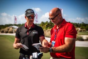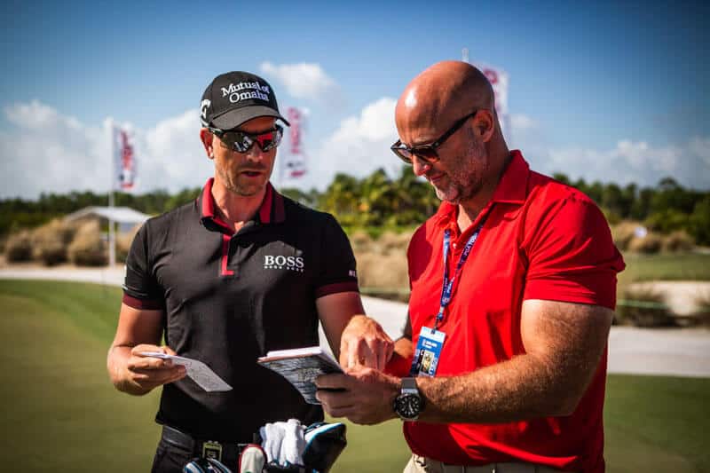 Henrik Stenson Hero World Challange 2018 på Bahamas Henrik Stenson med sin nya caddie Scott Vail på Hero World Challenge på Bahamas i december 2018. Foto: Mattias Brännholm