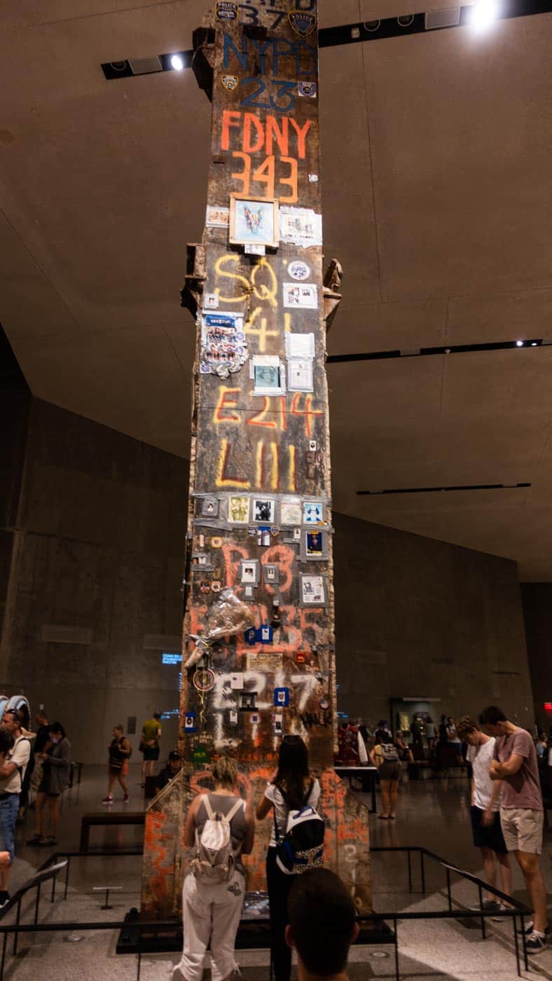 Det här är den sista biten som togs bort från ground zero. Initialt trodde man att det skulle ta 2-3 år att städa upp Ground Zero. Det tog 9 månader. Den här stolpen satt kvar i marken och när den som sista bit tog bort så skedde det i form av en begravning. Den täcktes i svart på lastbilen innan de transporterade bort. En synnerligen symbolisk handling. Nu var uppstädningen över…
