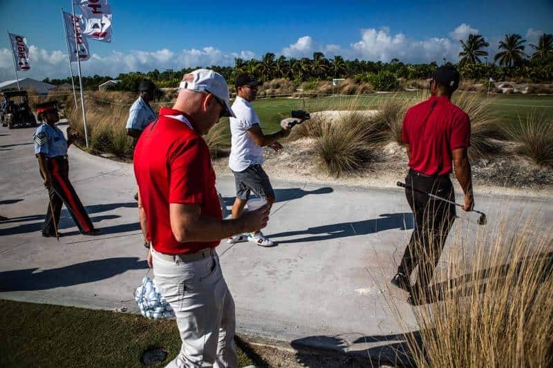 Tiger Woods på Hero World Challange 2018-2 Tiger Woods ställer upp på slefie 25 minuter innan start på Hero World Challenge.