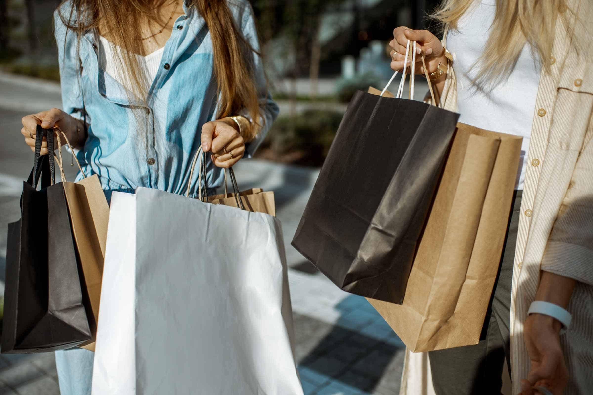 Women,Holding,Shopping,Bags,Outdoors,While,Shopping,,Close-up,View,On